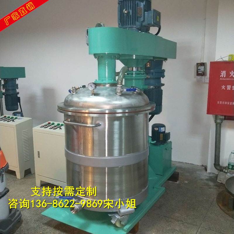 真空搅拌机是一种新型的混合,溶解,分散和均化各种混合液体和粉末的装置,该装置配置有高速,低速和可移动的刮板组件。低速混合组件由行星齿轮驱动。搅拌桨旋转时也会旋转,因此物料可以上下移动,从而在短时间内达到完美的搅拌功效。普遍用以电池有机硅胶高端油墨的生产,美缝剂,粘胶剂和其他化工产品。