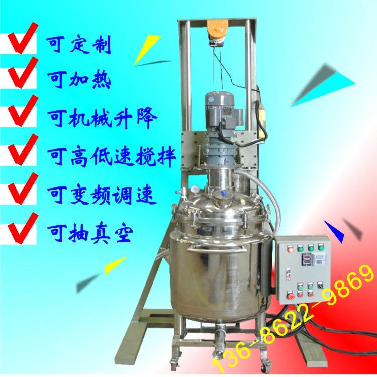 ◆搅拌速度可根据用户工艺要求选择0-1250r/min或0-1400r/min