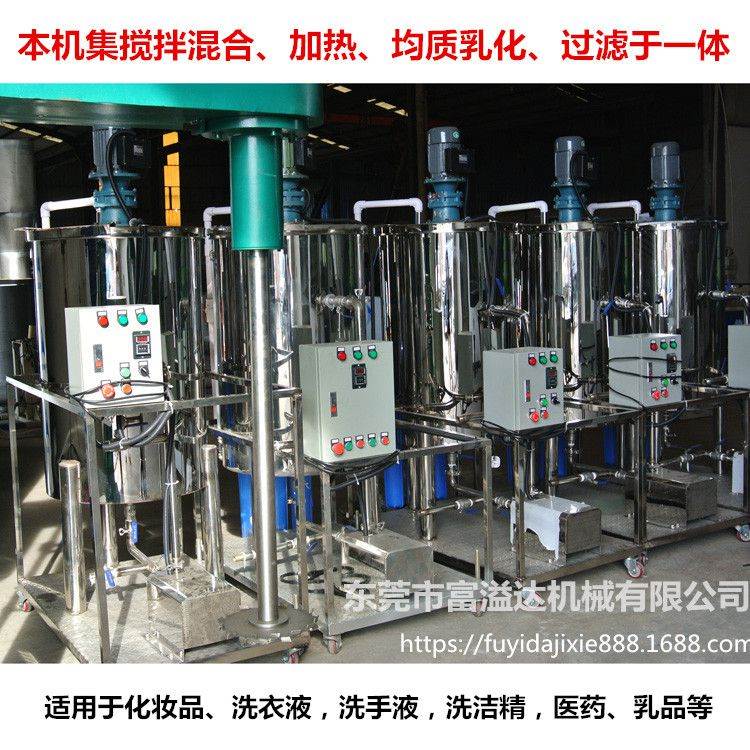 产品详情:东莞市富溢达机械液体搅拌罐,洗洁精洗衣粉混合桶,加热乳化搅拌罐主要适用于不同物料的混合和混合,粘液的互为混合,溶解,均匀混合等。它是各个行业不可或缺的设备。变频调速,刮墙搅拌,高剪切均质乳化,加热,冷却,电控,温度控制,操作平台等机能集成在一起。是国内外厂商配置材料的完美设备。